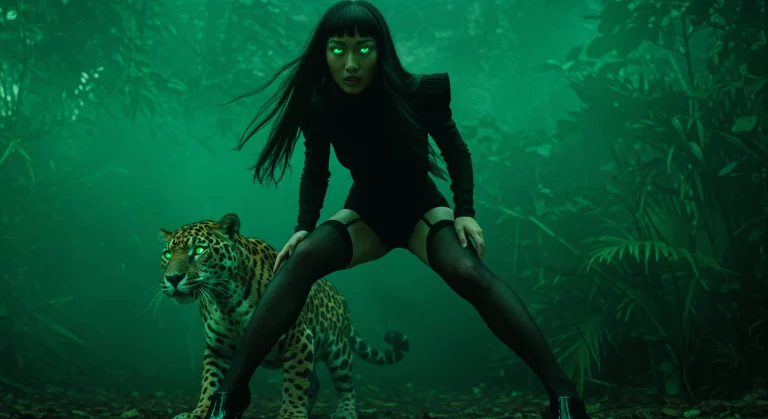 This piece explores the tension between composure and chaos, femininity and ferocity — all through an AI-generated fashion lens.